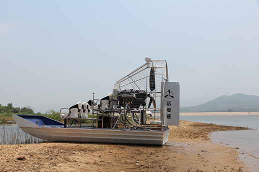 氣動船(Airboat)使用用途非常廣泛,可以在沼澤、濕地、冰面、草地、雪地和淺水水域等環境暢通無阻的航行,在歐美、加拿大、澳大利亞等發達國家已得到了不可替代的廣泛應用,使用汽車發動機帶動空氣螺旋槳來